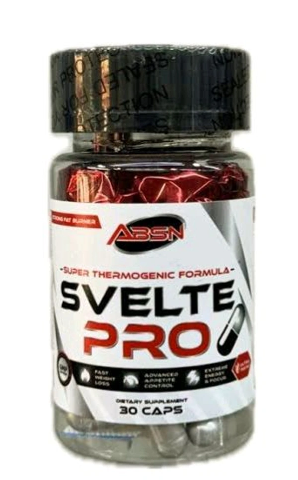 ABSN Svelte PRO Fat Burner is a most result giving fat burner provided by ABSN. Svelte is a fat burning capsule that contains L-Carnitine which is responsible for boosting up your metabolism helping you to shed the extra rigid weight form your body. It also helps in increasing the athletic performance,metabolic boosters like Rhodiola rosea (adaptogen herb), Dicaffeine malate (combination of Malic Acid and Caffeine) and green tea extracts found in SVELTE makes is a most result giving fat burner by ABSN.
