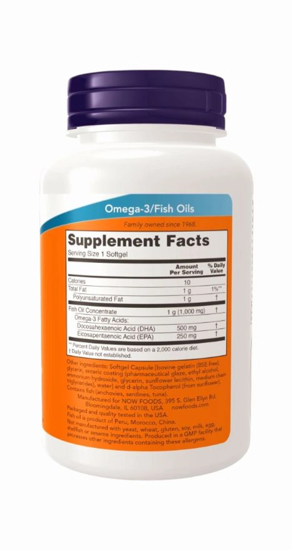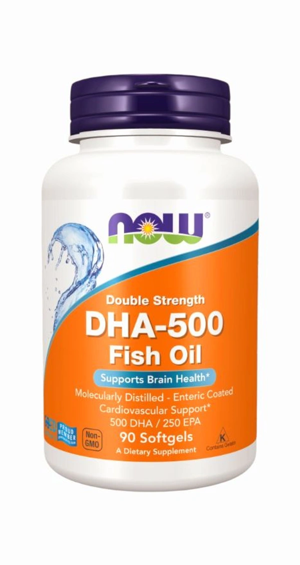 NOW® DHA-500 has twice the DHA (500 mg per softgel) as in our regular strength product (250 mg per softgel). This fish oil concentrate is manufactured under strict quality control standards. It is tested for potentially harmful levels of contaminants such as PCBs, dioxins, mercury and other heavy metals. Those who experience nausea or reflux from other fish oils should find this enteric-coated, odor-controlled softgel easier to tolerate.