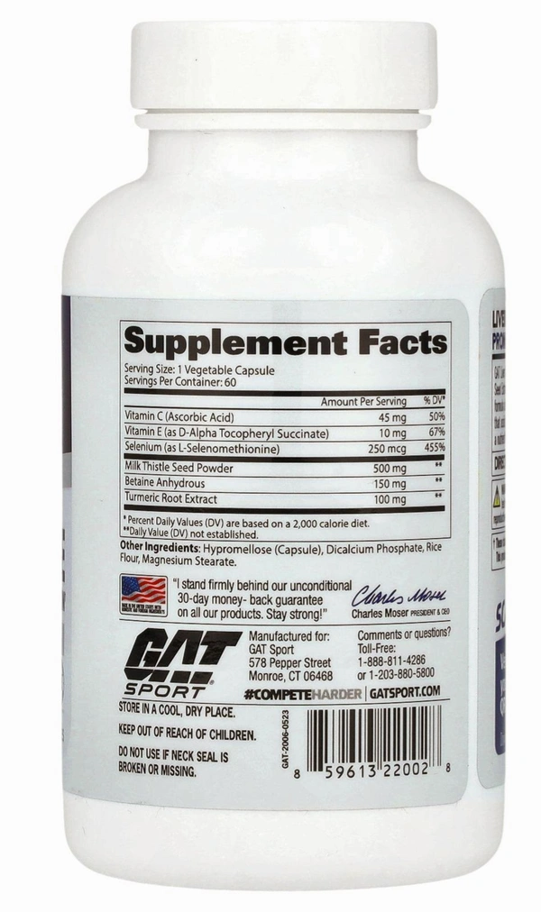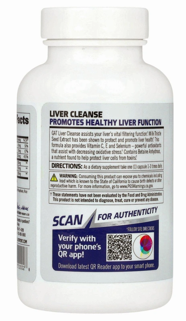 GAT Liver Cleanse assist your liver's vital filtering function. Milk Thistle Seed Extract has been shown to protect and promote liver health. This formula also provides Vitamin C, E and Selenium - powerful antioxidants that assist with decreasing oxidative stress. Contains Betaine Anhydrous, a nutrient found to help protect liver cells from toxins.