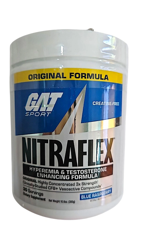Fuel your workouts like never before with GAT Sport NITRAFLEX, the ultimate pre-workout designed to help you crush your fitness goals. Available in the irresistibly refreshing Blue Raspberry flavor, this high-intensity formula is perfect for athletes and fitness enthusiasts aiming to maximize their performance, strength, and focus.