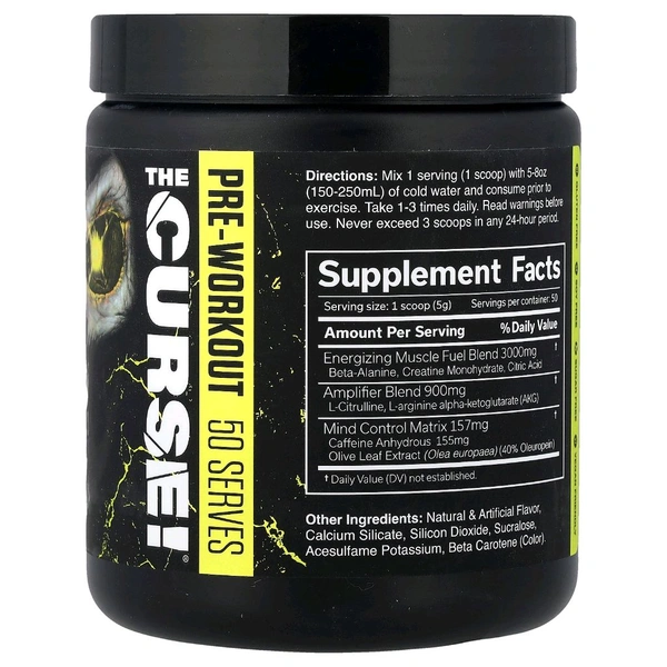 With its potent formula, The Curse! isn’t just another pre-workout—it’s a game-changer. Get ready to experience electrifying energy surges, laser-sharp focus, and explosive power for intense workouts. Whether you're lifting heavy, crushing cardio, or chasing your fitness goals, The Curse! has got your back.