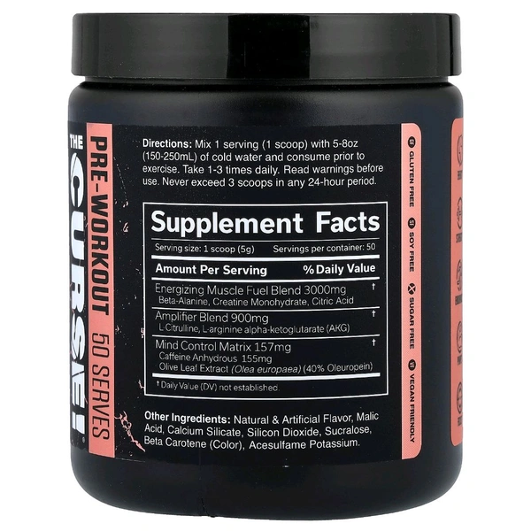 Get ready to crush your workouts like never before with The Curse! from NutritionArena. Designed for athletes, fitness enthusiasts, and anyone looking to take their performance to the next level, this pre-workout powerhouse delivers explosive energy, laser-sharp focus, and insane endurance. Whether you're hitting the gym, running trails, or pushing your limits, The Curse! is here to supercharge your training sessions.