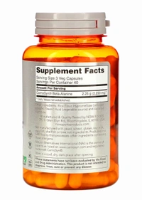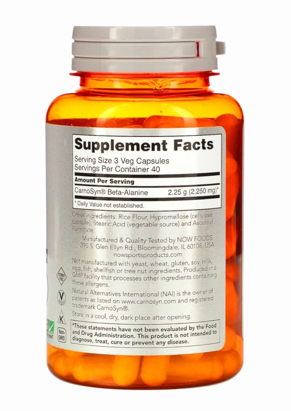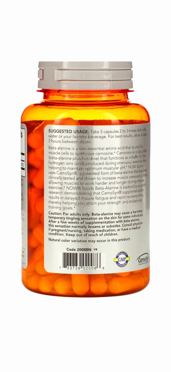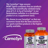 Beta-Alanine is a non-essential amino acid that is used by muscle cells to synthesize Carnosine. Carnosine is a dipeptide (Beta- Alanine plus Histidine) that functions as a buffer for the hydrogen ions (acid) produced during strenuous exercise, thus helping to maintain optimum muscular pH. NOW Sports uses CarnoSyn®, a patented form of Beta-Alanine that has been clinically tested and shown to increase muscle Carnosine content, allowing muscles to work harder and longer during intense exercise. NOW® Sports Beta-Alanine is backed by scientific research demonstrating that CarnoSyn® supplementation results in delayed muscle fatigue and rapid recovery time, thereby helping you attain your strength and endurance training goals.