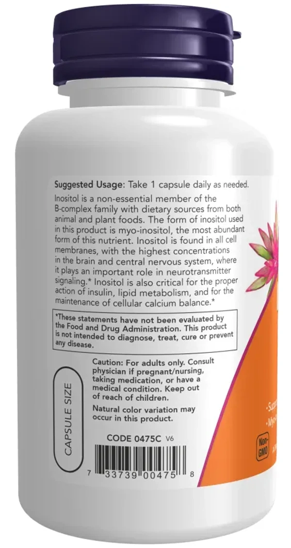 Inositol is a non-essential member of the B-complex family with dietary sources from both animal and plant foods. The form of inositol used in this product is myo-inositol, the most abundant form of this nutrient. Inositol is found in all cell membranes, with the highest concentrations in the brain and central nervous system, where it plays an important role in neurotransmitter signaling.* Inositol is also critical for the proper action of insulin, lipid metabolism, and for the maintenance of cellular calcium balance