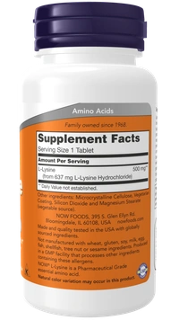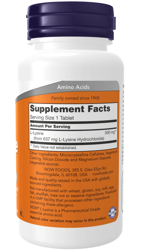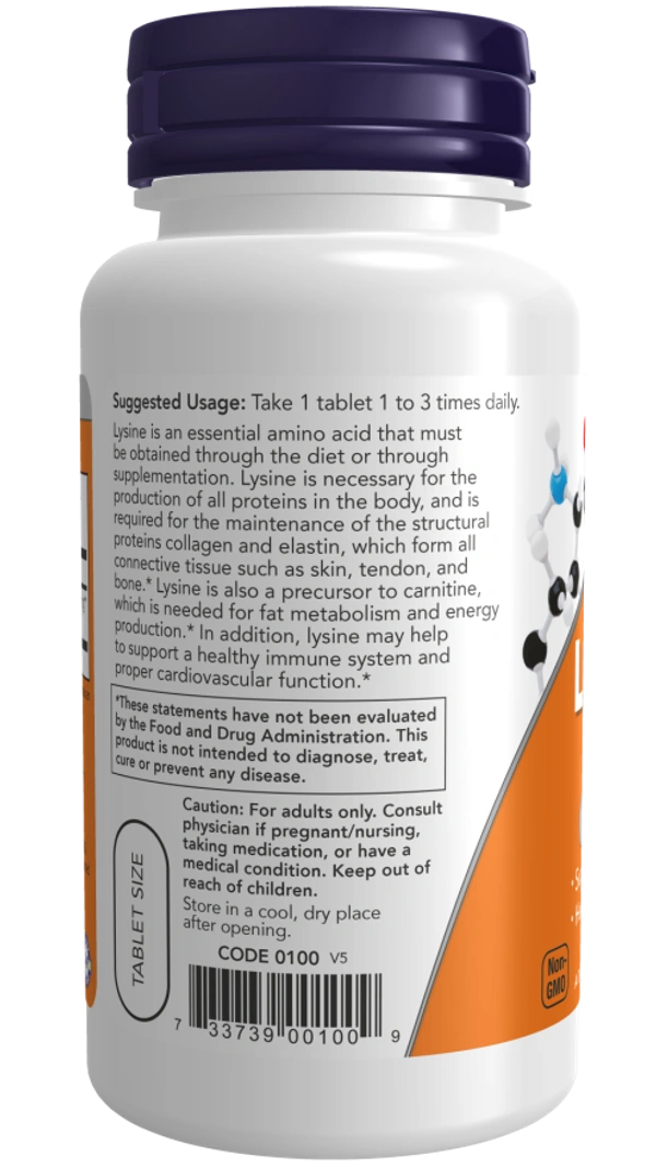 Lysine is an essential amino acid that must be obtained through the diet or through supplementation. Lysine is necessary for the production of all proteins in the body, and is required for the maintenance of the structural proteins collagen and elastin, which form all connective tissue such as skin, tendon, and bone.* Lysine is also a precursor to carnitine, which is needed for fat metabolism and energy production.* In addition, lysine may help to support a healthy immune system and proper cardiovascular function