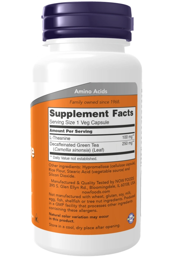 Theanine is a unique amino acid found naturally in the tea plant (Camellia sinensis). Theanine promotes relaxation while maintaining alertness and promotes healthy cognitive function.* Theanine may also support healthy vascular function through this relaxing effect.