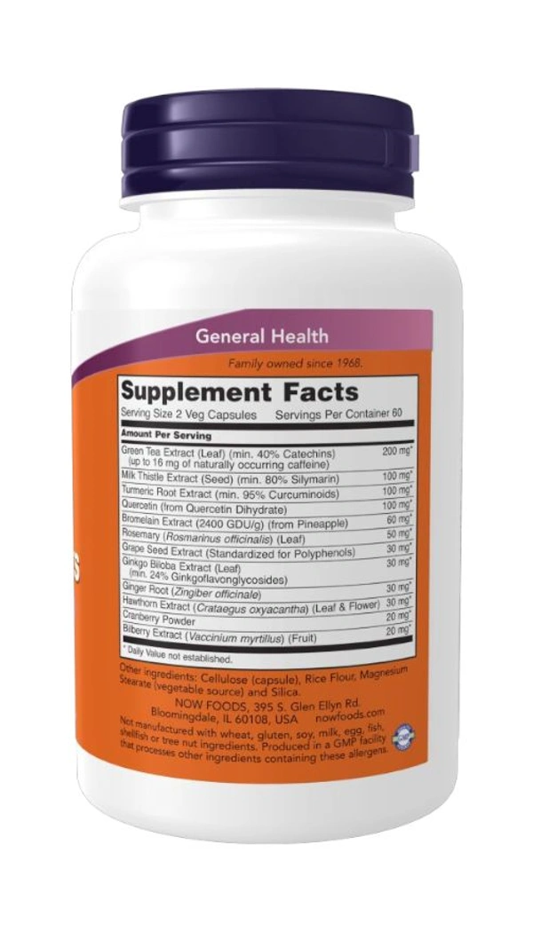 This comprehensive blend of potent herb and fruit extracts has been designed to deliver a broad spectrum of flavonoids with scientifically demonstrated free radical scavenging activity.* These herbs and fruits have been renowned throughout the world for centuries for their ability to maintain optimal well-being.*