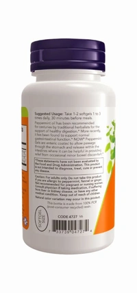 Peppermint oil has been recommended for centuries by traditional herbalists for the support of healthy digestion.* More recently, it has been found to support normal gastrointestinal function.* NOW® Peppermint Gels are enteric coated to allow passage through the stomach and release within the intestines where it can be helpful in providing relief from occasional minor bowel discomfort.*