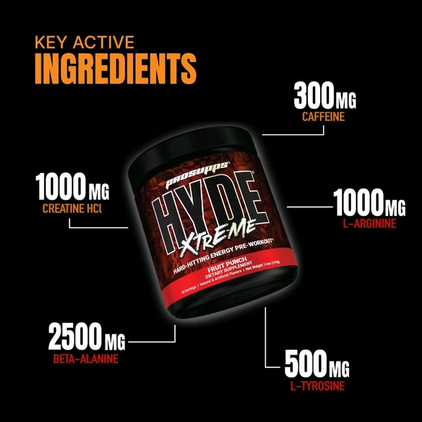 Mix 1 scoop of HYDE® Xtreme with 8 oz of cold water. Consume 15-30 minutes prior to exercise. Assess tolerance by taking 1/2 scoop the first time. HYDE® Xtreme is for advanced exercise and supplement users. Do not consume within 4 hours of bedtime. Do not take other products